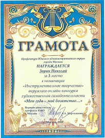 3 место на окружном конкурсе г. Москвы "Мои года - мое