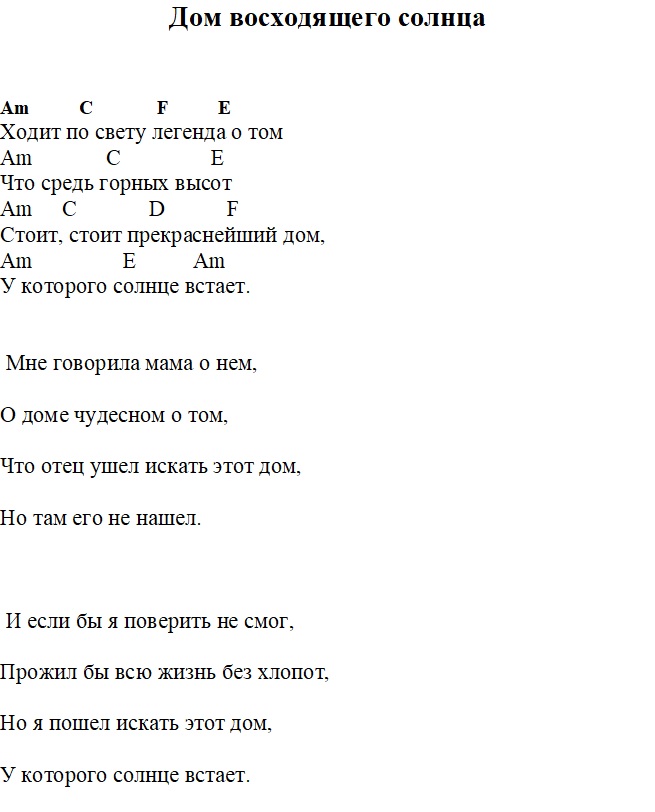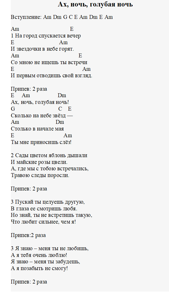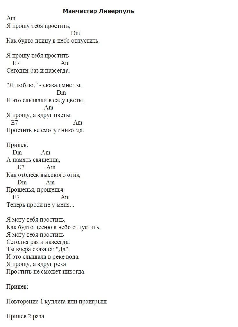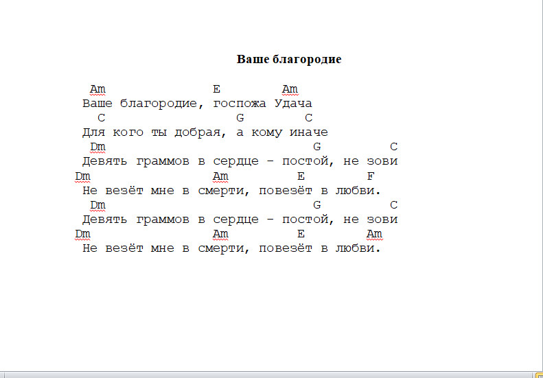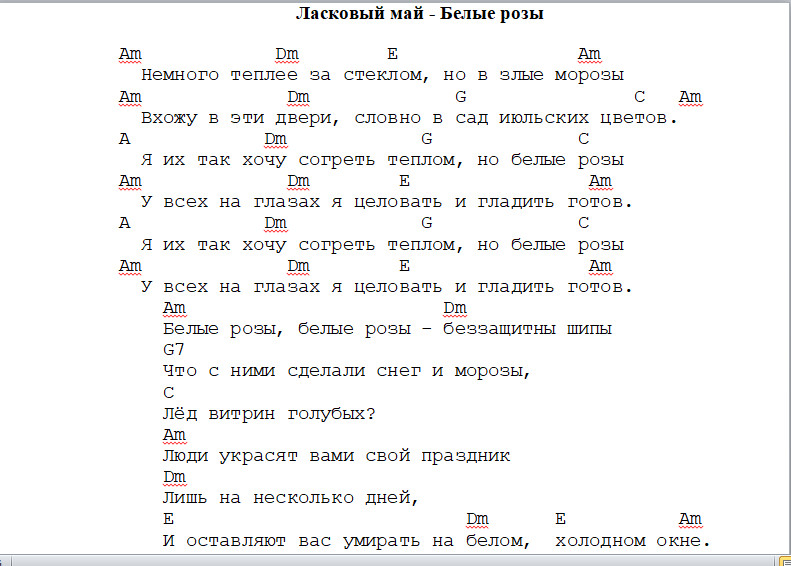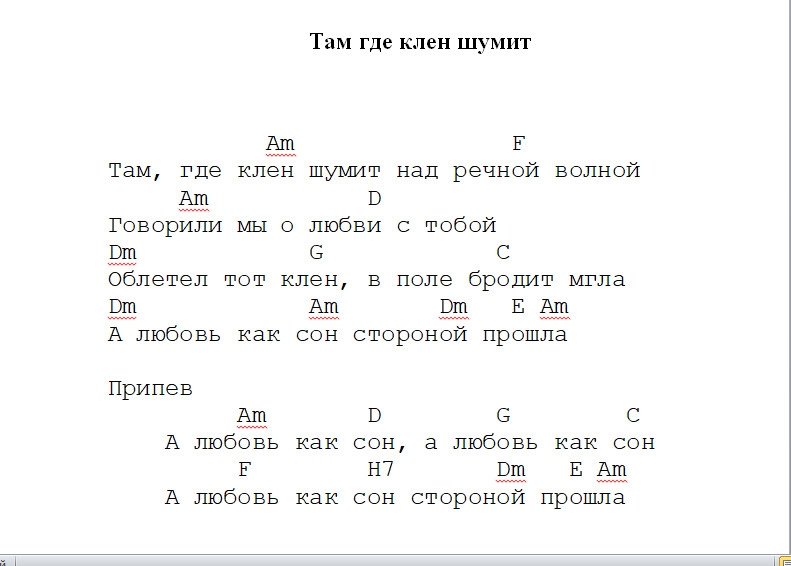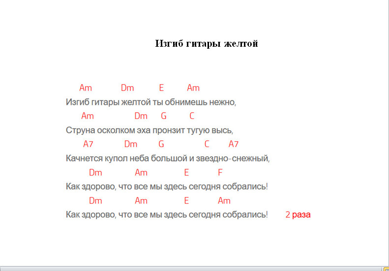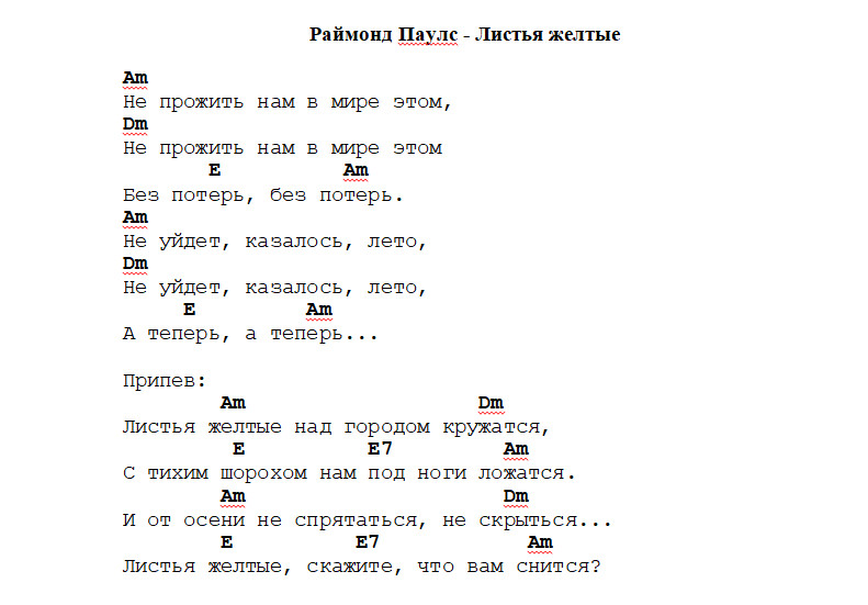 Чтобы просмотреть аккорды, нажмите на название песни.